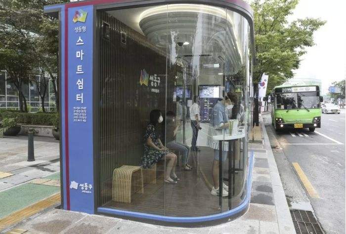 韓國使用高科技的公共汽車候車室防止Covid-19的傳播。 這10個 “智能候車亭 “配備了用于檢查溫度的外部熱像儀和內部的紫外線消毒燈。 沿著首都首爾市城東區的主要公交路線設置了太陽能發電的候車室。 乘客必須站在自動熱像攝影機的前面,只有在檢測到溫度低于99.5F時,滑動門才會打開。 下面還設置了另一個檢測兒童的攝像頭。排污泵